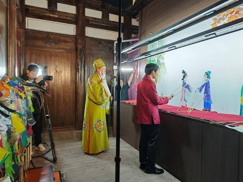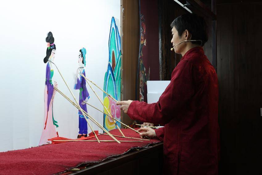 云梦皮影戏起源于清中叶,以牛皮雕刻、光影投射为特色,融合雕刻、绘画、音乐、表演等多元技艺。老艺人秦礼刚用竹签舞动关公、包拯等经典形象,其质朴唱腔随移民远播安徽宣城,成为跨越地域的文化纽带。如今,云梦皮影通过直播间、艺术馆等新场景破圈,用绿幕和弹幕吸引年轻观众,实现“老手艺”与“新表达”的对话。