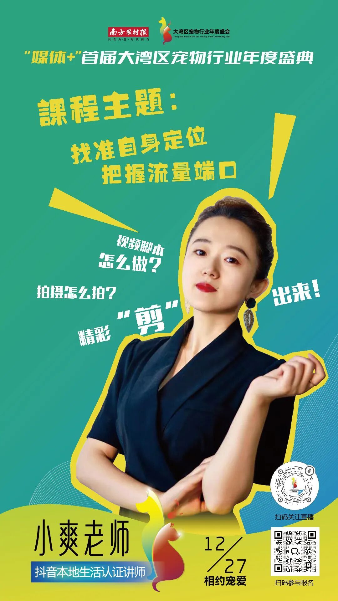 12月27日下午14:30,“媒体+”首届大湾区宠物行业年度盛典第二场直播课开启!我们特邀两位实战派嘉宾,从平台到内容,从创作到变现,为您系统拆解宠物赛道的创作逻辑。